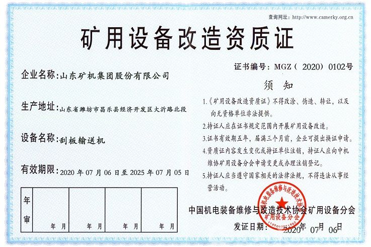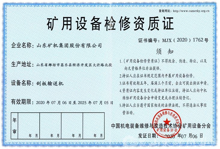 近日,国家机电装备维修与改造技术协会评审组一行三人,对我公司的矿用顺槽刮板运输设备、洗选设备及减速器等整机与相关配件共计十二种产品进行了改造及检修资质的现场认定评审工作,我公司顺利通过评审,并取得了相关资质认证。